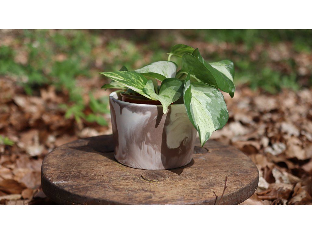 Minimalistický a zároveň originálny kvetináč vyrobený z ekologického materiálu jesmonite. Kombinácia jemnej bielej a prírodnej hnedej farby vytvára nadčasový dizajn, ktorý krásne doplní každý interiér – od moderného až po boho či škandinávsky štýl.